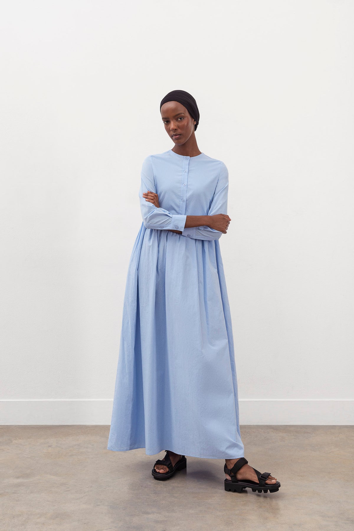 For a casual yet sophisticated look, the Blue Maxi Cotton Shirt Dress is your go-to ensemble. Inspired by the classic shirt dress, this maxi version offers a relaxed and effortless vibe. The soft cotton fabric feels gentle against the skin, making it an excellent pick for sunny days. The Blue Maxi Cotton Shirt Dress strikes the perfect balance between comfort and elegance, making it a versatile choice for various occasions.