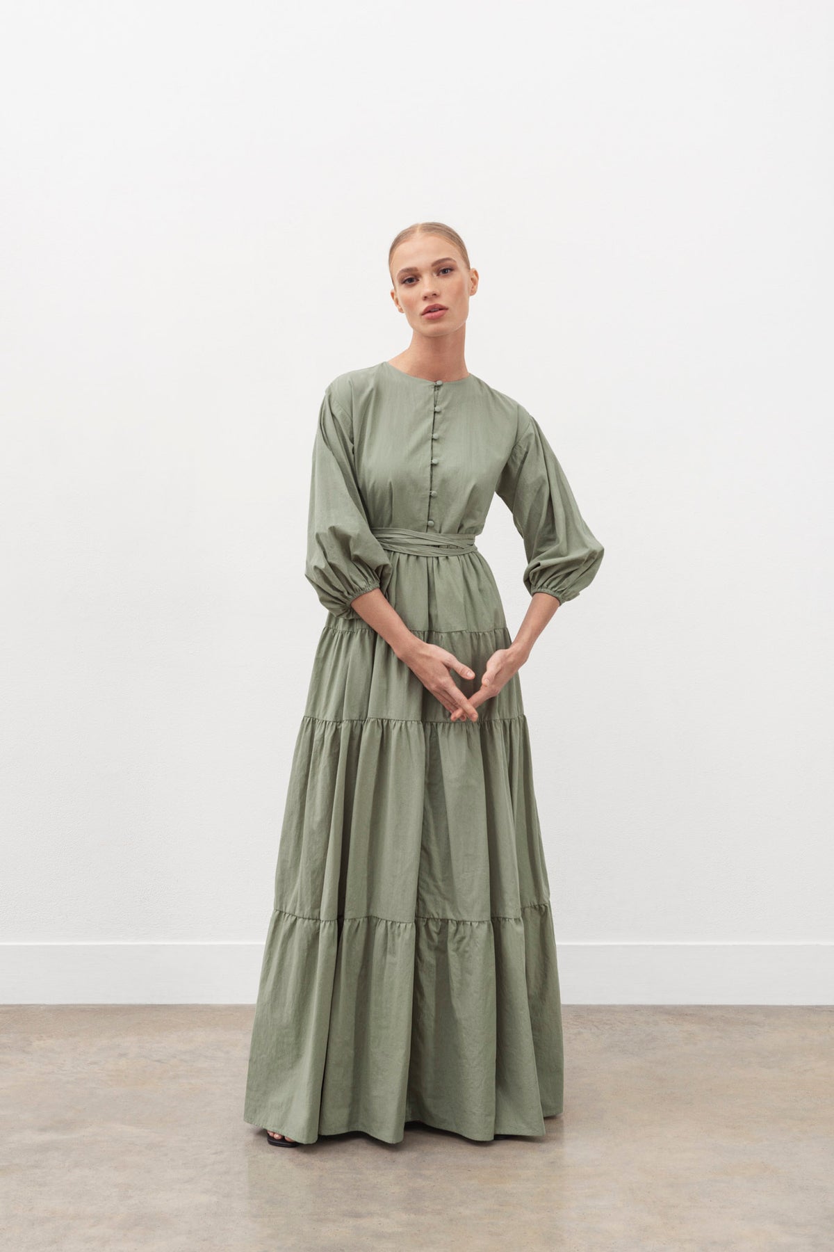The Green Cotton Poplin Tiered Dress: A Trendy Statement